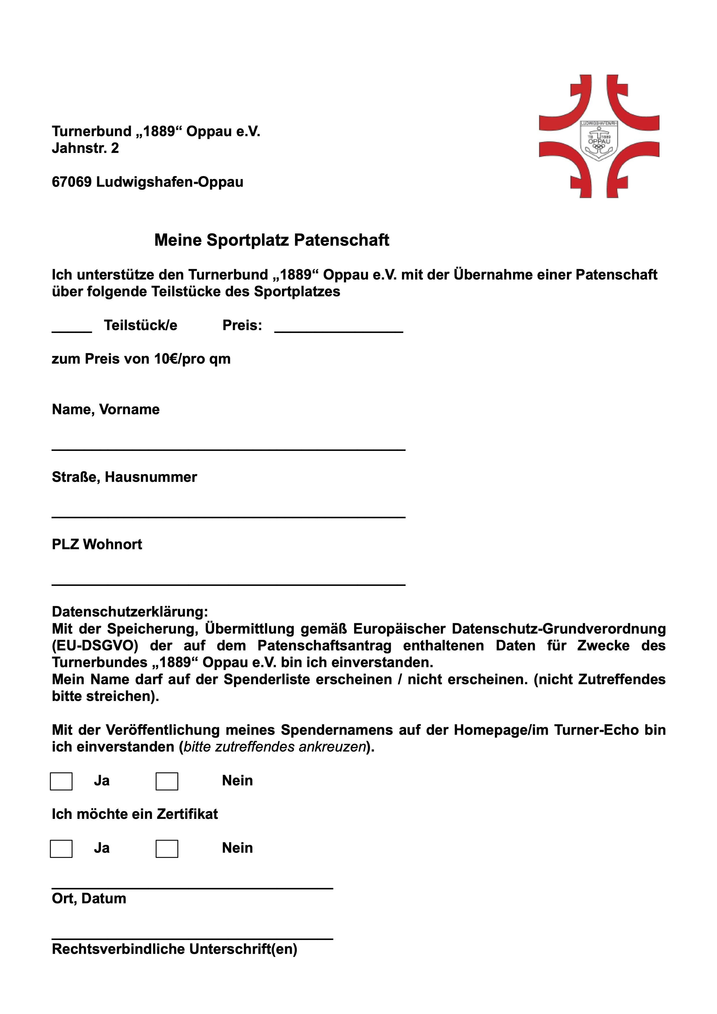 Werden die Formblätter nicht übermittelt, können wir die Spender leider nicht im Turnerecho bzw. auf unserer Homepage nennen. Hierfür wird ein klares Einverständnis benötigt, welches mit den Formblättern erteilt wird.