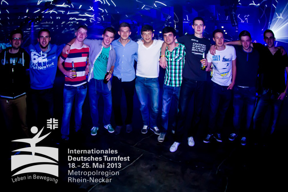 Der erste Einstieg war die TUJU-Party am Sonntagabend. Hunderte Jugendliche aus ganz Deutschland feierten die ersten erfolgreichen Tage des noch jungen Turnfestes in der alten Posthalle in Mannheim. Bis spät in die Nacht und noch weit darüber hinaus war feiern angesagt. Diejenigen, die am Montag darauf spielfrei hatten, waren die Glücklichen. Doch auch die anderen kamen keinesfalls zu kurz!