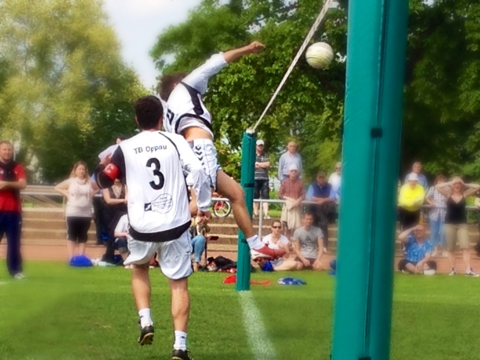 Auf schwerem Geläuf überrannte unser Team den Gastgeber TG Offenbach ohne größere Probleme mit 11:2. Das Trainerduo Bog / Blümbott mahnte trotz – oder gerade wegen – des hohen Ergebnisses des ersten Satzes, die Konzentration zu behalten und das Spiel Ball für Ball durchzukämpfen. Und sie behielten Recht – denn der zweite Satz wurde erst in der Verlängerung, mit 13:11, erzittert. Der dritte Satz spielte sich dann wieder leichter – Tim Pfeifer, der mittlerweile Angaben und Hauptangreifer spielte, machte seinen Job gut. Auch in der Abwehr arbeiteten Max Breier und Philipp Schwaderlapp wieder konzentriert zusammen und präsentierten Timo Bernhardt die Bälle so, dass er Tim in Szene setzen konnte – ein deutliches 11:6 und damit der 3:0 Sieg gegen den alten und neuen Tabellenletzten waren die logische Konsequenz.