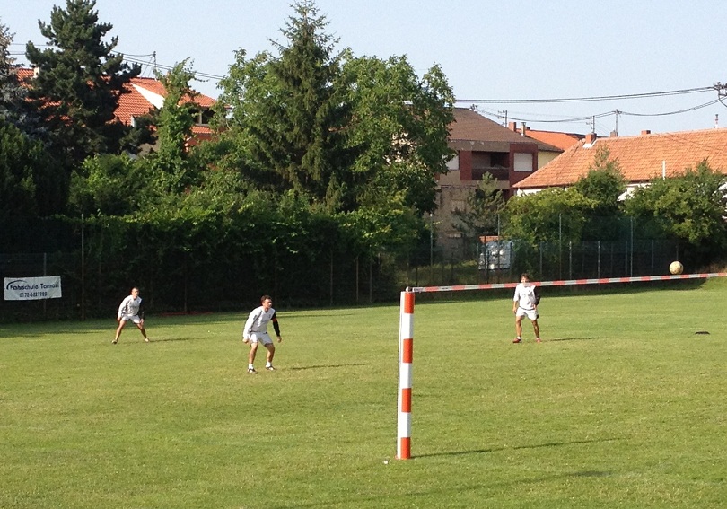 Mit neu gewonnener Kraft gingen die Spieler ins letzte Spiel des Tages gegen den ausgepowerten TV Bretten. Durch viele Eigenfehler der Melanchtonstädter hatten sie leichtes Spiel. Endstand im ersten Satz 11:3. Im zweiten Satz kamen sie zwischenzeitlich kurz ins Straucheln, aber sie fingen sich wieder und siegten mit 11:7. Mit letzten Kräften gingen sie bei tropischen Temperaturen in den dritten und, wie sich später herausstellen sollte, auch letzten Satz. Hier wollte sie den Sack sofort zu machen und gewannen souverän mit 11:4.