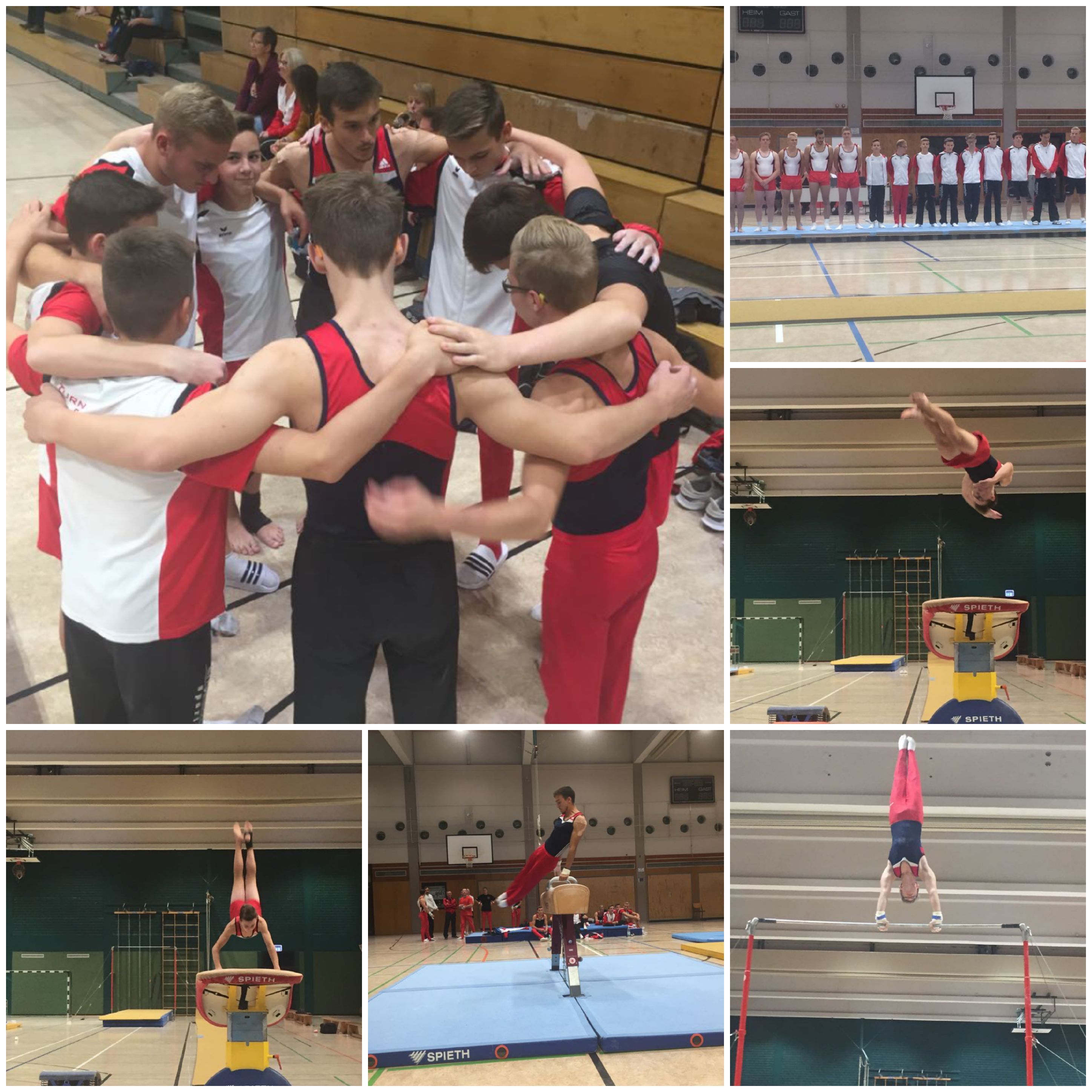 Die erst 13 bis 18 Jahre alten Turner gewannen ihren 1. Wettkampf mit 194 zu 185 Punkten gegen das Erwachsene Männerteam von Sickingen.
